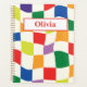 This is custom personalised notebook featuring colourful groovy warped chequerboard pattern in rainbow colours like red, green,pink,purple,blue and orange. It's great looking notebook for women who love retro checks in 70s style