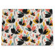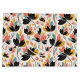 A Large Gift Bag Designed In Retro Colours Of Black, Teal, Gold And Orange Shaped In A Floral Leaf Design