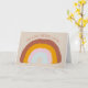 Send some good vibes for birthdays or for any occasion with this greeting card that's ready to be personalised with your own message on the front and on the inside This card features a hand-drawn doodle style illustration of a rainbow in mellow, retro colours of rust red, golden orange, pale pink and light blue.