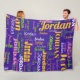 Retro Colours Repeating Name Purple Yellow Green Fleece Blanket