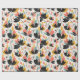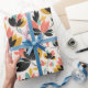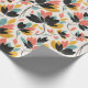 A Colourful Wrapping Paper Designed In Retro Colours Of Black, Teal, Gold And Orange Shaped In A Floral Leaf Design