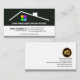 A retro columnar design with the colours of black, white and grey. Over at the top of the card is a rooftop home with a colourful window. Below this motif is the business name. The corresponding white layer has your prestigious name and job title on the left. Across the vertical line lies the phone, email and address details in their respective buttons. Below this is the slogan caption "call me for a free quotation", you can change the caption to suit your service needs.