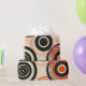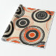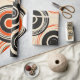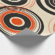 This artwork features a striking pattern of concentric circles in varying sizes, arranged across a neutral cream background. The design incorporates bold black and vibrant orange hues, creating a strong visual contrast that immediately captures attention. The circles are layered and interconnected, with some lines appearing hand-drawn, adding a dynamic and slightly irregular feel to the composition. The repetition of circular forms and the retro colour scheme evoke a sense of mid-century modern design, giving the piece a timeless yet playful quality.