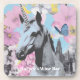 Retro Coquette Pink and Blue Unicorn Collage Coaster