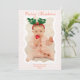 Retro coral Gingham Merry Christmas Wavy 2 photos Holiday Card