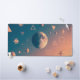 Vintage illustration showcasing a stylized, floating moon and surrounding geometric stars, all rendered in a gentle, cosmic atmosphere.