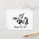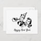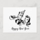 A black and white Illustration of a happy couple ringing in the New Year. Greeting: Happy New Year.