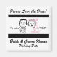 A retro style Save the Date wedding magnet featuring a black line drawing of a bride and groom and text that reads "Please Save the Date!" and "He asked! I said YES!". You can easily add your wedding date and names to this customisable Save the Date magnet.