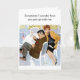 A retro couple from the 1950s or 60s sit at a table, but seem to be trying their best to ignore each other. She looks annoyed as he turns away from her. The front of the card says, "Sometimes I wonder how you put up with me." On the inside of the card: "Then I remember...oh, I put up with you. So we’re even." This could be used for an anniversary or Valentine's Day.