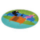 This Retro Couple with Cat Cutting Board features a cartoon couple trying to get cosy while watching television on a mid century modern, blue sofa. The cat, however, has other ideas. On one side of the sofa, there is a handsome man in a black suit with red tie. On the other side of the stylish couch, there is a beautiful, blonde woman in a form fitting, hot pink dress. Things would be going great if it weren't for the sleek black cat, which has laid claim to the centre sofa cushion. This 1960's style, minimalist art design is set in a stylish living room. The sofa's backdrop is a green, stone wall. On the aqua floor, there is a round, green shag rug, which matches the stone wall. At the forefront of the design, we see the back of an orange television set with rabbit ears, which seems to be playing the cat's favourite TV program.