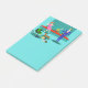 This Retro Couple with Dog Post-It Notes looks like a scene out of a romantic comedy. The 1960s's style, minimalist art design features an attractive couple enjoying a romantic evening at home. The sophisticated room prominently features an aqua and teal brick fireplace with a bright red ledge. A beautiful, redhead woman wearing a bright, pink dress is perched on the ledge. She is enjoying a martini with a floating olive, a roaring fire, good music, and the company a tall, dark and handsome man. The man is wearing a blue suit and red tie. His martini glass is raised to toast his charming companion. In his other hand, he is holding a vinyl record album. At his feet, we see a most adorable dachshund wearing a red collar. The playful wiener dog is walking in the direction of a green record player with orange, spindle legs. On the floor, there is a colourful group of fun, eclectic, vinyl records. Cheers! Here's to the perfect evening at home.