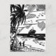 A black and white retro image of a cruise ship and two people waving from shore. Image from a 1940’s Vintage Printers Book (with no copyright).
