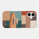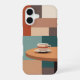 Stylised coffee cup on a rounded table, with curved steam and a geometric retro background.
