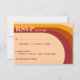 Classic vintage 70s retro colours with wavy curved arch striped lines wedding RSVP response card. Cool design with hippie colours cream, orange and red. Change the number for the amount of tables you have.