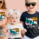 This particular design features a cute retro saying printed on the front that reads "Cousin Crew." with customisable name. The text is likely to be in a bold and fun font that adds to the retro playful and energetic nature of the message. The phrase "Cousin Crew" suggests that the baby is part of a lively and active group of cousins playing baseball, and celebrates the camaraderie and friendship that comes with having a big extended family. The design is likely to appeal to parents or caregivers who have a close-knit family and who wish to acknowledge the special bond between cousins. The message is inclusive and welcoming, highlighting the sense of belonging and community that can come with being part of a big family.