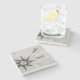 The coasters are gorgeous, a quality feel and heavy weight. They look like a precious archeological find. A rustic stone juxtaposed with a modern floral black and white print. I like the way the print goes slightly imperfect on the cut stone edges giving them a kind-of natural beauty.