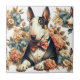 Retro Cute Floral Bull Terrier Ceramic Tile