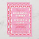 Retro Squiggle Wavy Pink Red Photo Rehearsal Dinner Invitation