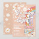 Celebrate in style with this retro-inspired 8th birthday party invitation featuring a groovy 1960s hippie theme. Designed with peach tones, white daisies, butterflies, crescent moons, stars, and a rainbow, it sets the perfect vibe for peace, love, and fun. The playful van illustration with a peace sign adds a nostalgic touch, making it ideal for kids birthday parties with a boho or flower power theme. Personalise easily to create a unique invitation that guests will love.