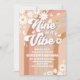 Celebrate your childs special day with this retro floral birthday invitation featuring playful daisies, hearts, butterflies, and peace signs in vibrant pink, peach, and brown tones. Perfect for a groovy 9th birthday party, this customisable invite blends nostalgic charm with modern fun. Personalise with your event details to create a unique keepsake guests will love. Ideal for kids parties, this design brings peace, love, and joy to every celebration.