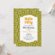 Green and yellow retro groovy daisy flower in chequered box pattern Birthday Invitation.