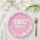 This is a Pink Retro Daisy Flower Two Groovy 2nd Second Birthday Party Paper Plates.