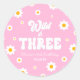 Retro Daisy Flower Wild & Three 3rd Birthday Party Classic Round Sticker