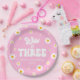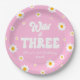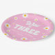This is a Pink Retro Daisy Flower Wild & Three 3rd Birthday Party Paper Plates.