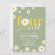 Retro Daisy Four Ever Wild Sage Green 4th Birthday Invitation