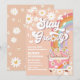 Celebrate in style with this retro-inspired "Stay Groovy" birthday invitation featuring playful daisies, rainbows, butterflies, and a vintage hippie van. Perfect for a 1st birthday party or any fun celebration, this whimsical design captures the spirit of peace, love, and joy. The vibrant peach background and bold typography make it eye-catching, while the nostalgic 1960s theme adds a unique charm. Customise easily with your party details to create a memorable invitation that guests will adore.