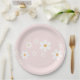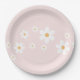 Retro inspired baby shower plates with 70s style daisies and boho colours.
