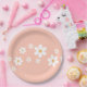 Retro inspired baby shower plates with 70s style daisies and boho colours.