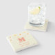 The coasters are gorgeous, a quality feel and heavy weight. They look like a precious archeological find. A rustic stone juxtaposed with a modern floral black and white print. I like the way the print goes slightly imperfect on the cut stone edges giving them a kind-of natural beauty.