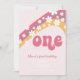 Retro inspired first birthday invitation with 70's style daisies and boho fonts and colours.