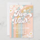 Celebrate in groovy style with this retro rainbow birthday invitation featuring pastel stripes, cheerful daisies, peace signs, stars, and butterflies. Perfect for kids parties, this vibrant 70s-inspired design sets the tone for a fun and colourful celebration. Customise with your childs name, party details, and RSVP information to create a unique keepsake. Ideal for hippie, boho, or rainbow-themed birthdays, this playful invite spreads peace, love, and joy to all your guests.