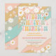 Celebrate in style with this retro rainbow birthday invitation featuring pastel stripes, cheerful daisies, smiley faces, hearts, and stars. Perfect for teens, this groovy design sets the tone for a fun and vibrant party. Customise with your details to create a unique invite that shines with peace, love, and happiness. Ideal for 13th birthdays, summer parties, or any colourful celebration, this playful card brings joy and nostalgia together.