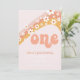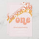 Retro inspired Wild One first birthday invitation with 70's style daisies and boho fonts and colours.