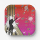 Retro Dance Silhouette Paint Splatter Circles Paper Plate