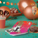 Add a burst of colour and style to your party table with these retro dance silhouette paper plates. Featuring a lively mix of paint splatter effects, neon circles and a bold dancing figure, this design is perfect for birthdays, celebrations, music-themed events and casual gatherings. The abstract, high-energy artwork creates a fun atmosphere while keeping your setup looking cohesive and modern. Durable and convenient, these paper plates combine practicality with striking visual appeal for any festive occasion.