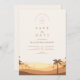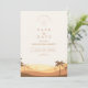 Capture the warm romance of a tropical desert sunset with this minimalist retro-inspired wedding design. Featuring softly layered dunes and silhouetted palm trees in burnt sienna and peach tones, this style evokes a dreamy desert paradise perfect for destination or boho-inspired weddings. The nostalgic gradient and modern layout blend coastal desert charm with timeless elegance.