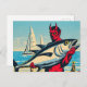 Retro Devil With A Tunafish on the Beach Postcard