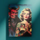 Retro Devilish Tattooed Pin-up Postcard