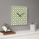 Retro Diamond in Circle Pattern Blue Green Gold Square Wall Clock