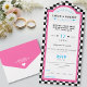 Retro Diner Chequerboard Pink & Blue Wedding All In One Invitation