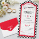 Retro Diner Chequerboard Red Black & White Wedding All In One Invitation