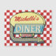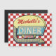 This cool, retro 50s diner sign artwork can be easily personalised with your own name. The background is a slightly-distressed red-and-white chequered pattern, and the 1950s-style sign on top says DINER and OPEN in neon with space for your first or last name at the top.