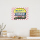 Create your own custom, 1950's style diner sign wall poster using this simple template. These cool retro posters have a slightly distressed pink-and-white chequered background with a sign on top that says "DINER" and "OPEN" in neon with space for you to add your own first or last name - or any other word you'd like. The sign also has a lighted arrow graphic pointing left. The colours are done in shades of pink, white, black, blue, yellow, grey and red. These signs would look good in your diner, home kitchen or 50s themed bar. Just fill in the easy DIY template or "Customise It" if your text runs long & you need to resize, rearrange or change text colours & fonts.