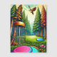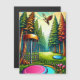 Retro disc golf course with Eagle flying over the pine trees ai art with vintage colours and camping vibe.