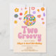 This is a Retro 70's Vintage Disco Ball Hippie Two Groovy 2nd Birthday Party Invitation.