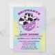 Girly girl purple glitter disco ball and a very retro cow-pattern cowgirl hat team up to create the perfect disco girl party invitation. A holographic purple, blue and yellow watercolor background frames it. This item is part of the Purple Glitter and Cow Pattern Collection where you'll find lots of bachelorette party stationery and party supplies.